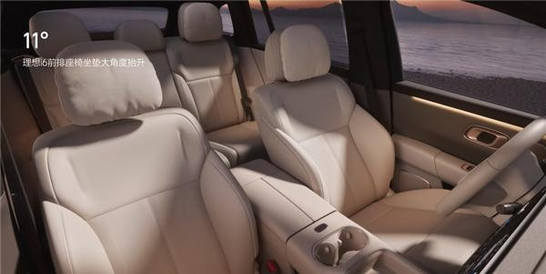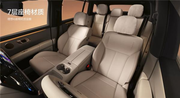 内饰依旧延续了理想家族化的设计语言,提供超大一体式连屏,质感相当出色,同时全车有超95%的区域进行了隔音降噪处理,座椅更是追求极致舒适,前后均使用了7层材质,且支持座椅靠背大角度调节和一键成床。